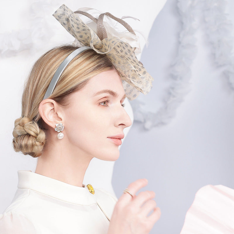 Women’s Vintage Faux Feather Pearl Mesh Kentucky Derby Royal Ascot Fascinators With Clip