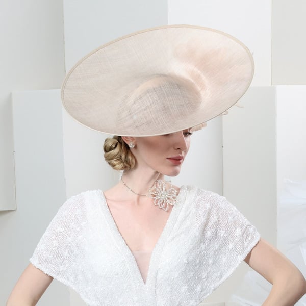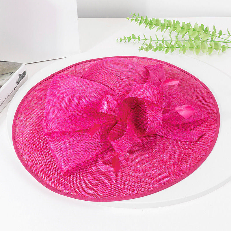 Women’s Wide Brim Faux Feather Bow Sinamay Wedding Guest Kentucky Derby Saucer Hats Fascinator With Headband