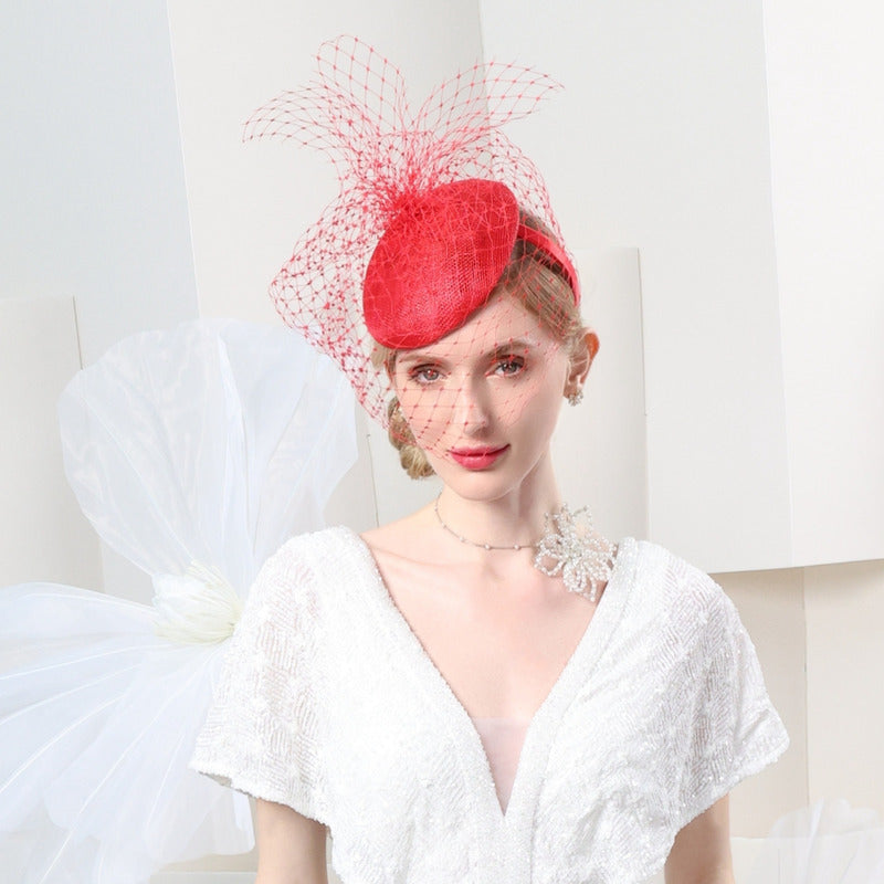 Women’s Vintage Veil Sinamay Wedding Guest Horse Racing Pillbox Hats Fascinators With Headband