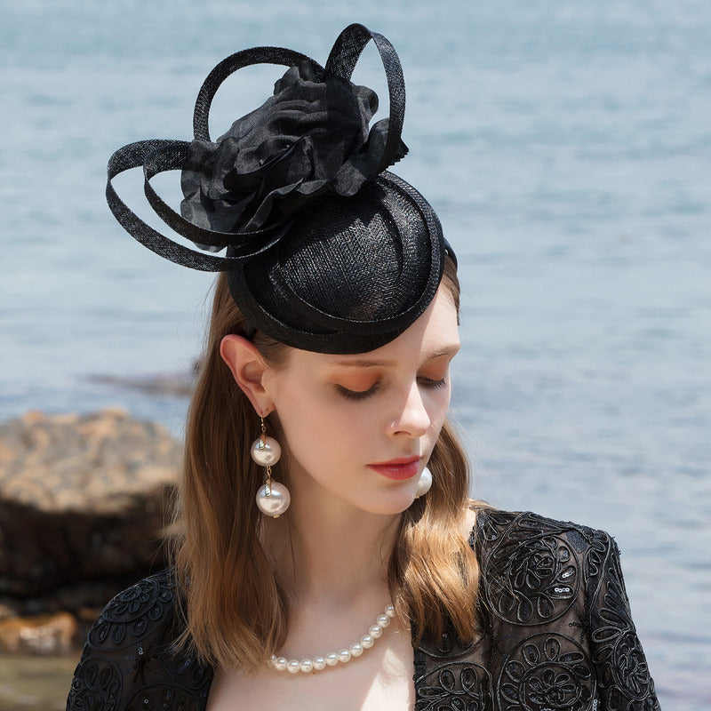 Women’s Vintage Flower Sinamay Kentucky Derby Royal Ascot Saucer Hats Fascinators With Headband