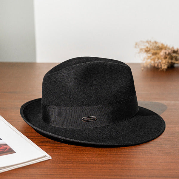 Flat Brim Winter Band Wool Wedding Fedora Hats – Black