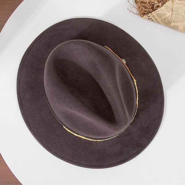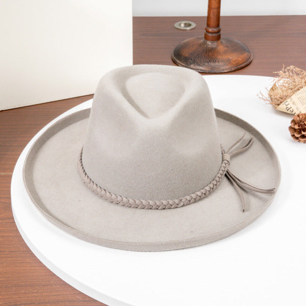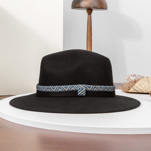 Boho Flat Brim Winter Band Wool Wedding Fedora Hats