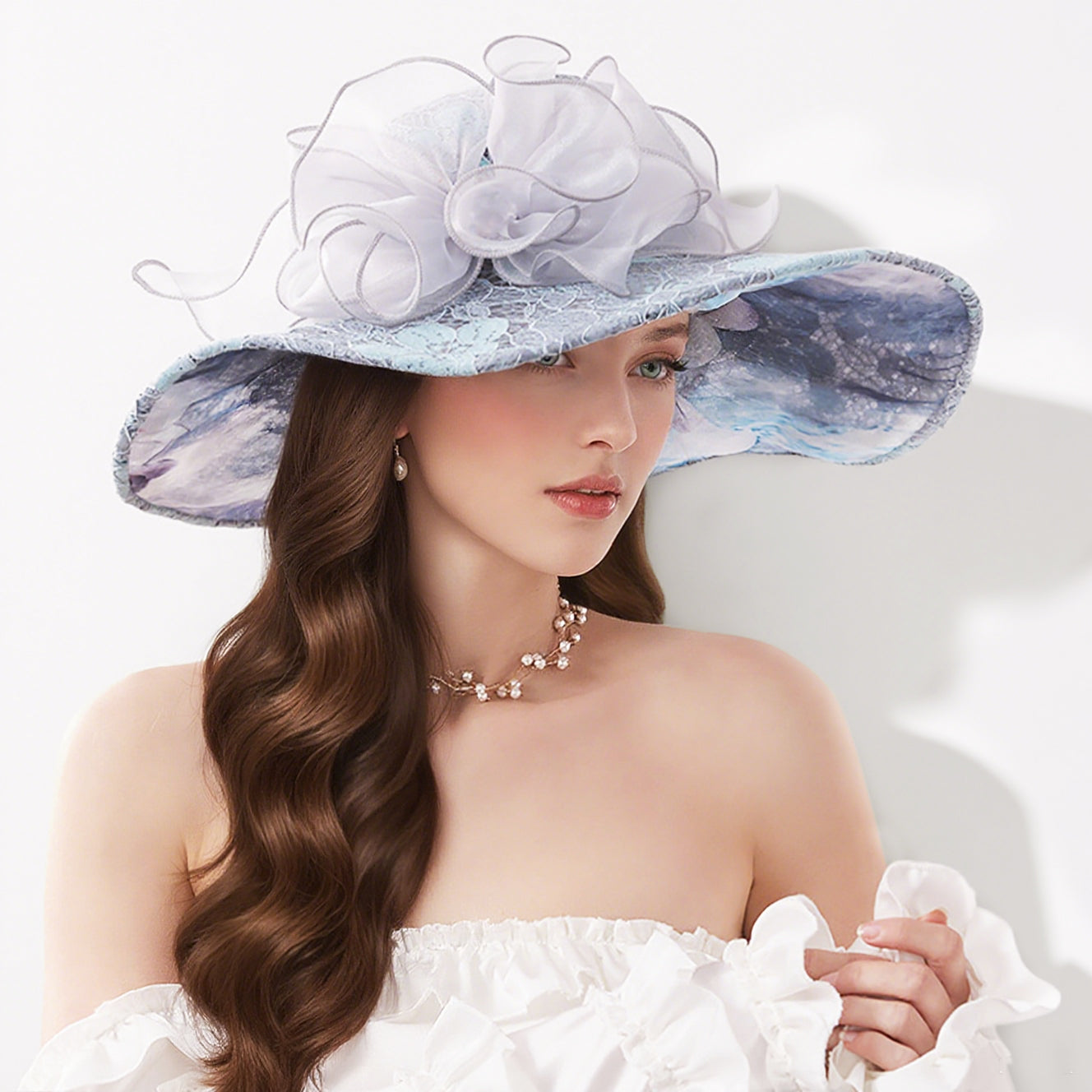 Women’s Wide Brim Chiffon Lace With Flower Kentucky Derby Church Hats