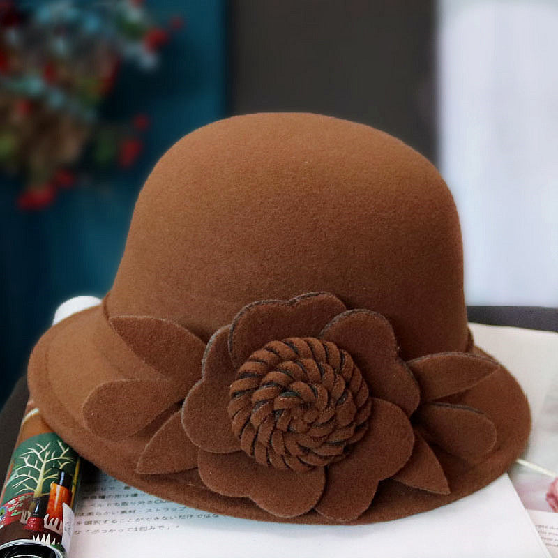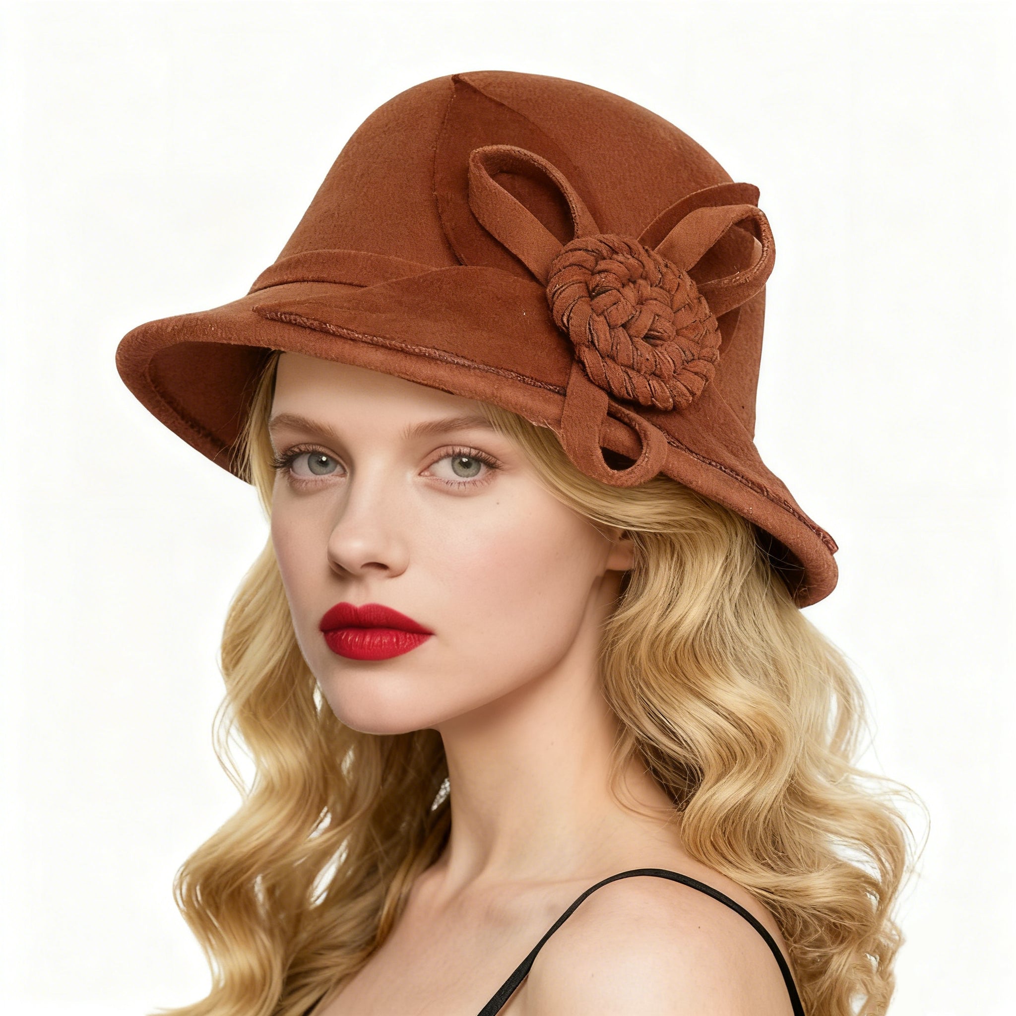Women’s Elegant Winter Felt With Flower Cocktail Bowler Hats Church Hats