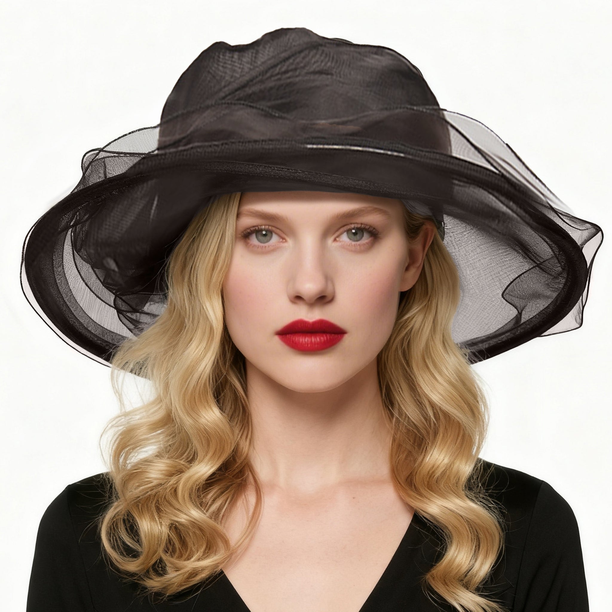 Women’s Wide Brim Organza With Flower Kentucky Derby Church Hats – gold