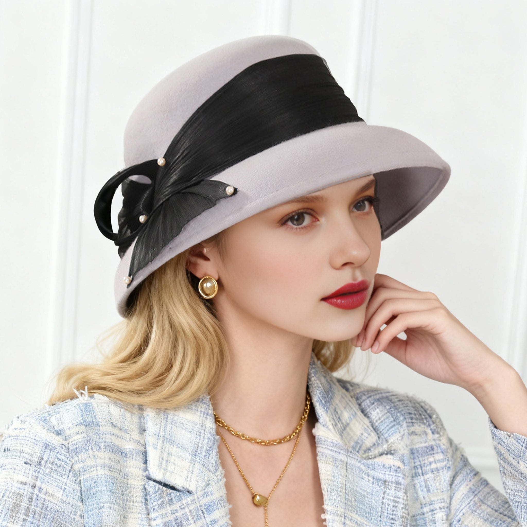 Women’s Classic Winter Felt With Bowknot Cocktail Bowler Hats Church Hats