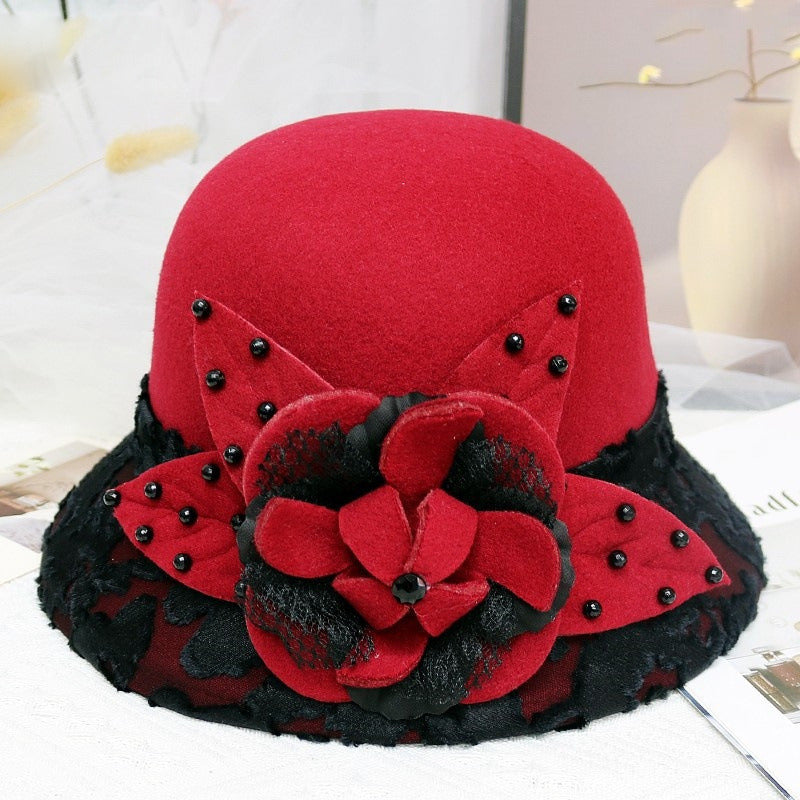 Women’s Vintage Winter Felt With Flower Rhinestone Lace Cocktail Bowler Hats Church Hats