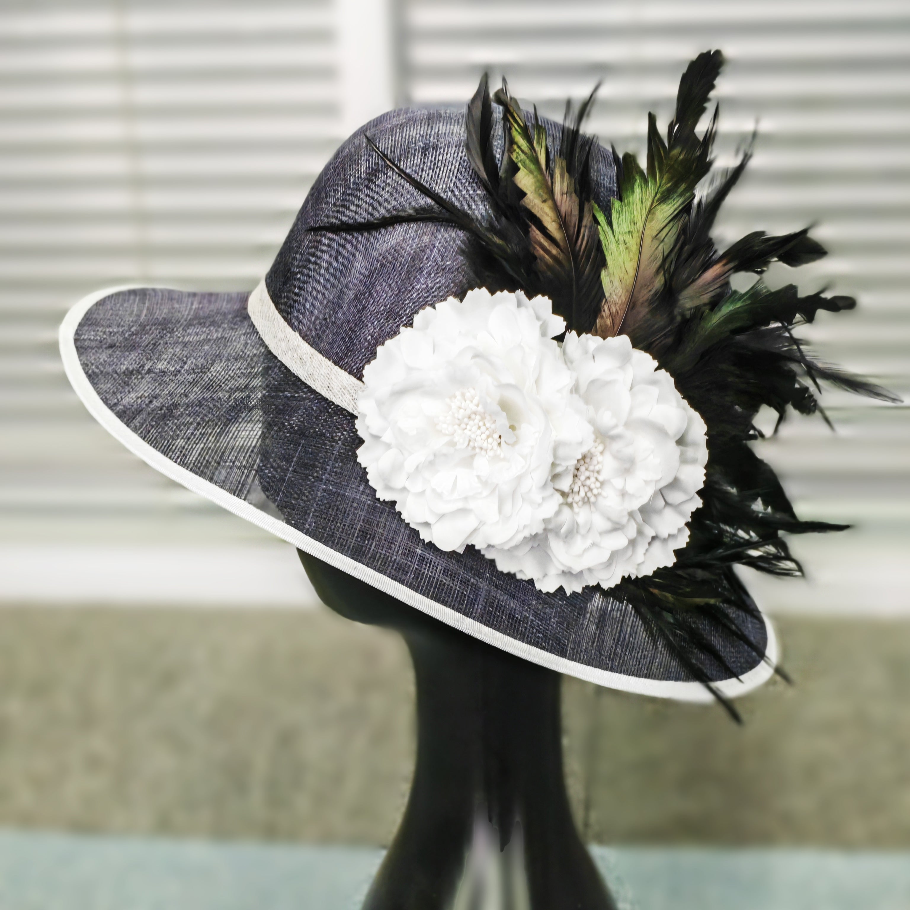 Women’s Elegant Sinamay Flower Faux Feather Kentucky Derby Royal Ascot Bowler Church Hats