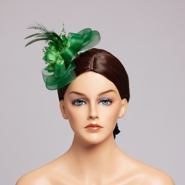 Mesh With Faux Feather Flower Kentucky Derby Fascinators With Clip – green