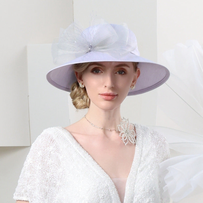 Women’s Wide Brim Polyester Mesh With Flower Pearl Kentucky Derby Church Hats