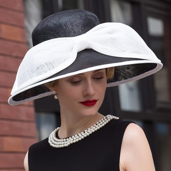 Women’s Wide Brim Sinamay With Bowknot Kentucky Derby Church Hats – black and white