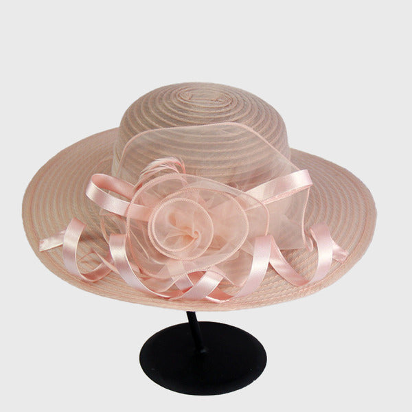 Women’s Wide Brim Polyester With Flower Kentucky Derby Church Hats – pearl pink