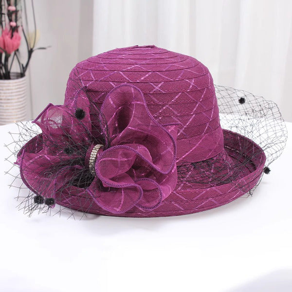 Women’s Wide Brim Polyester With Flower Kentucky Derby Church Hats – purple