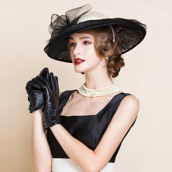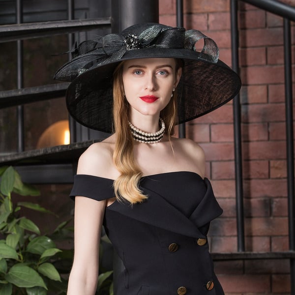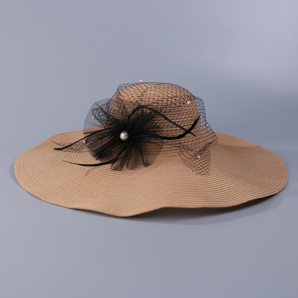 Women’s Wide Brim Summer Acrylic Fabric With Pearl Tulle Beach Kentucky Derby Sun Hats