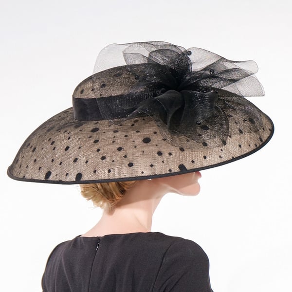 Women’s Wide Brim Sinamay With Tulle Polka Dot Kentucky Derby Church Hats