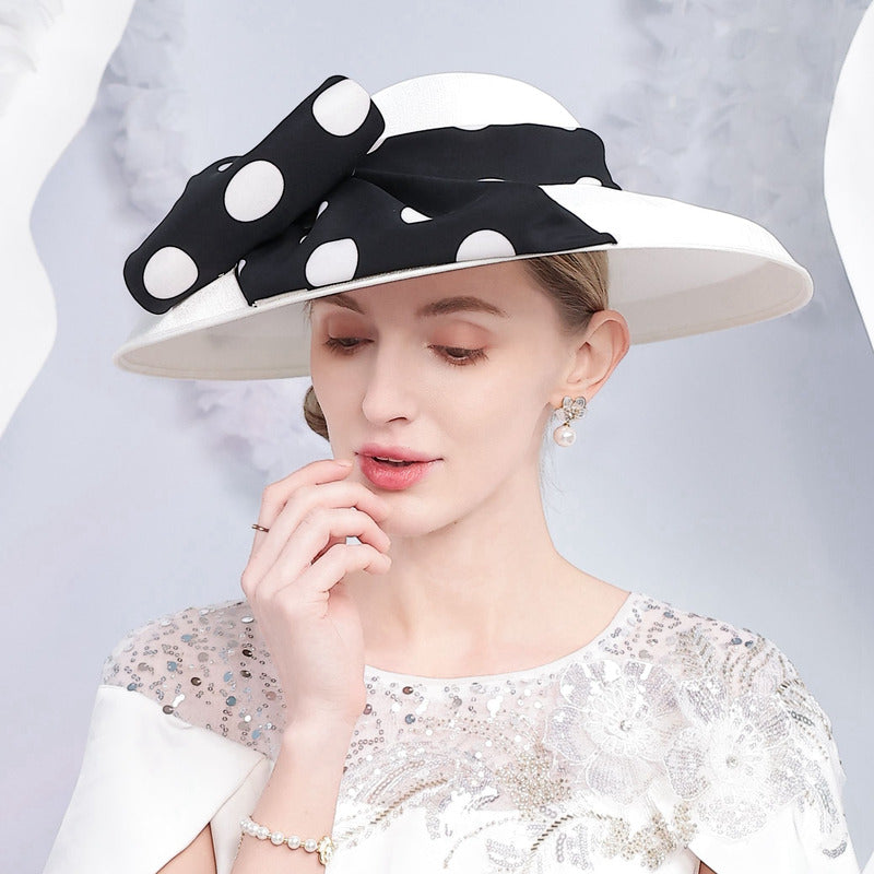 Women’s Wide Brim Sinamay With Polka Dot Kentucky Derby Church Hats With Headband