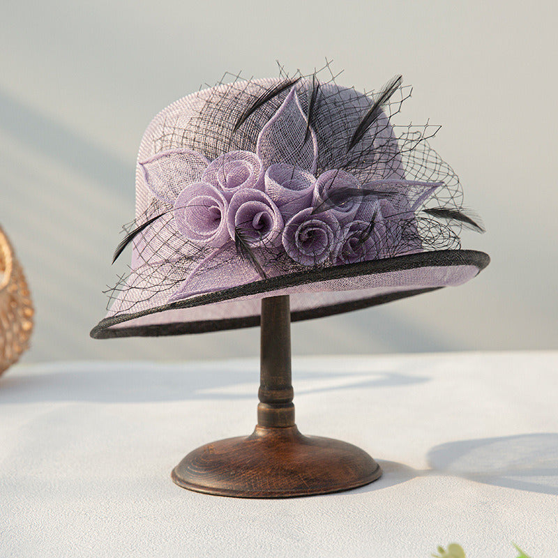 Women’s Elegant Sinamay Flower Faux Feather Kentucky Derby Royal Ascot Bowler Church Hats