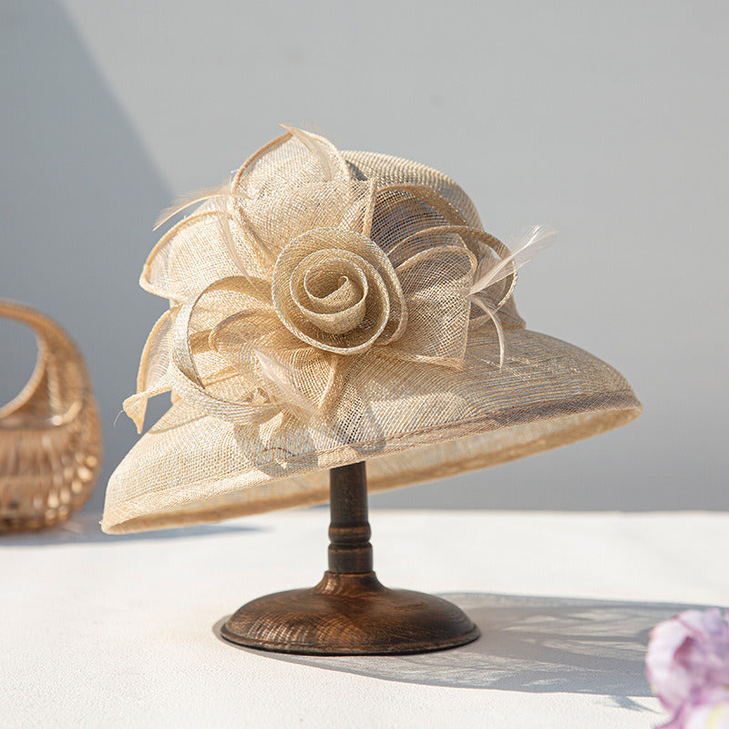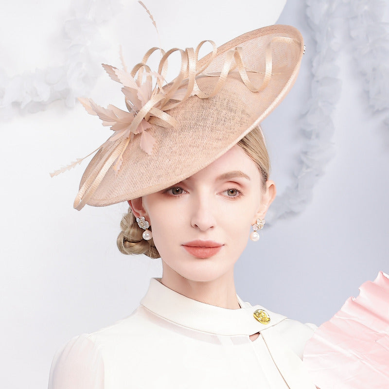 Women’s Faux Feather Flower Sinamay Kentucky Derby Church Hats – Champagne