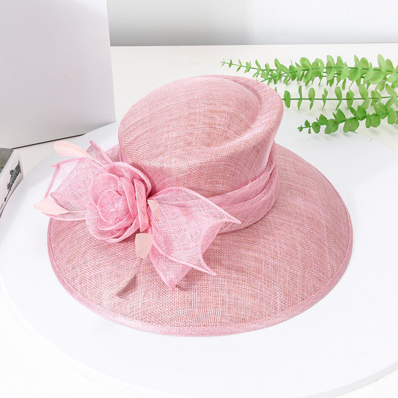 Women’s Elegant Faux Feather Flower Sinamay Kentucky Derby Royal Ascot