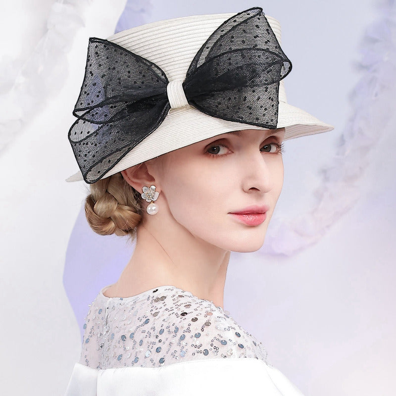 Women’s Elegant Summer Bow Polka Dot Polypropylene Royal Ascot Sun Hats