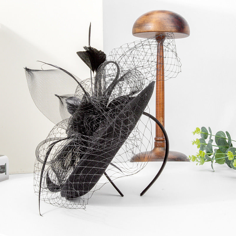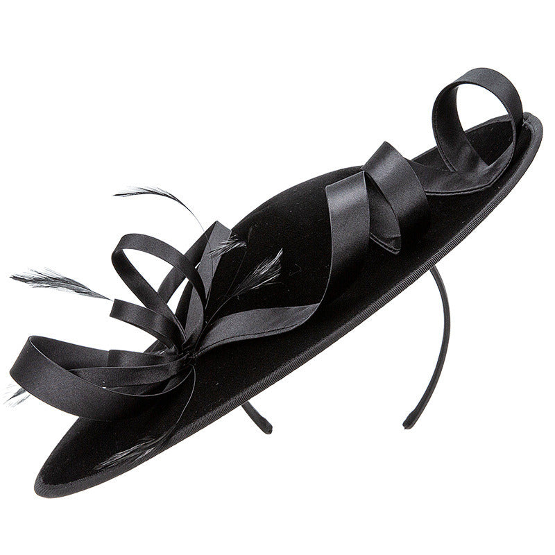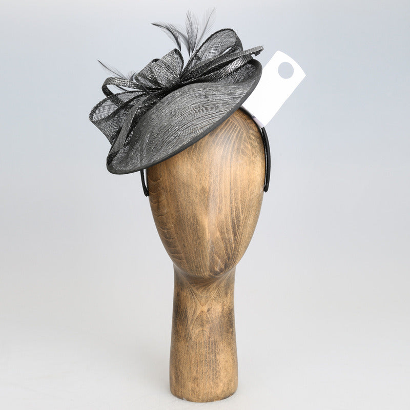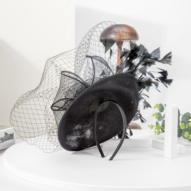 Women’s Faux Feather Veil Faux Sinamay Kentucky Derby Saucer Hats Fascinators With Clip Headband – Black