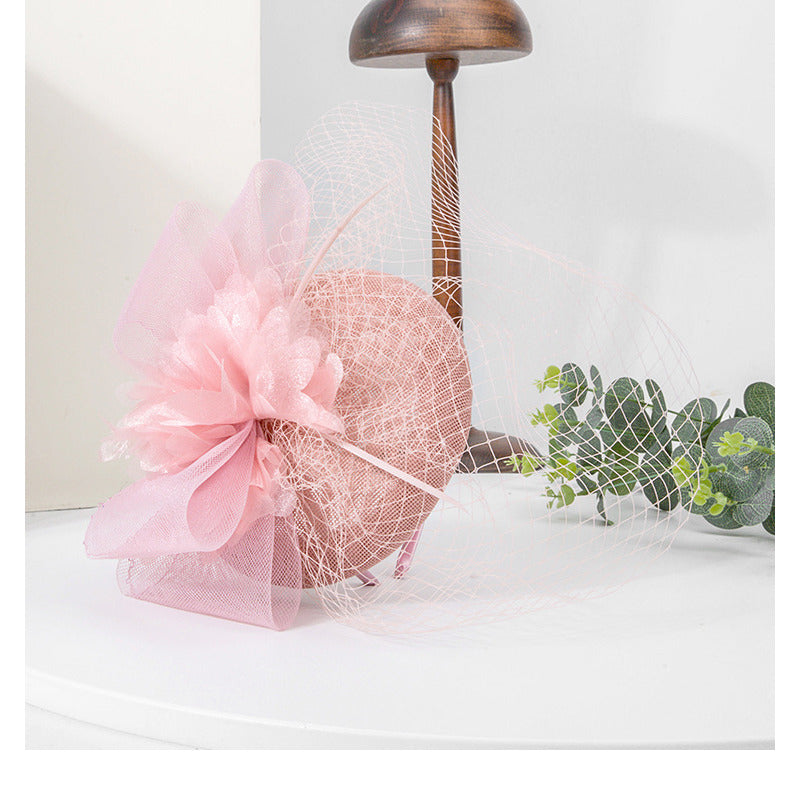 Women’s Faux Feather Veil Faux Sinamay Kentucky Derby Saucer Hats Fascinators With Clip Headband