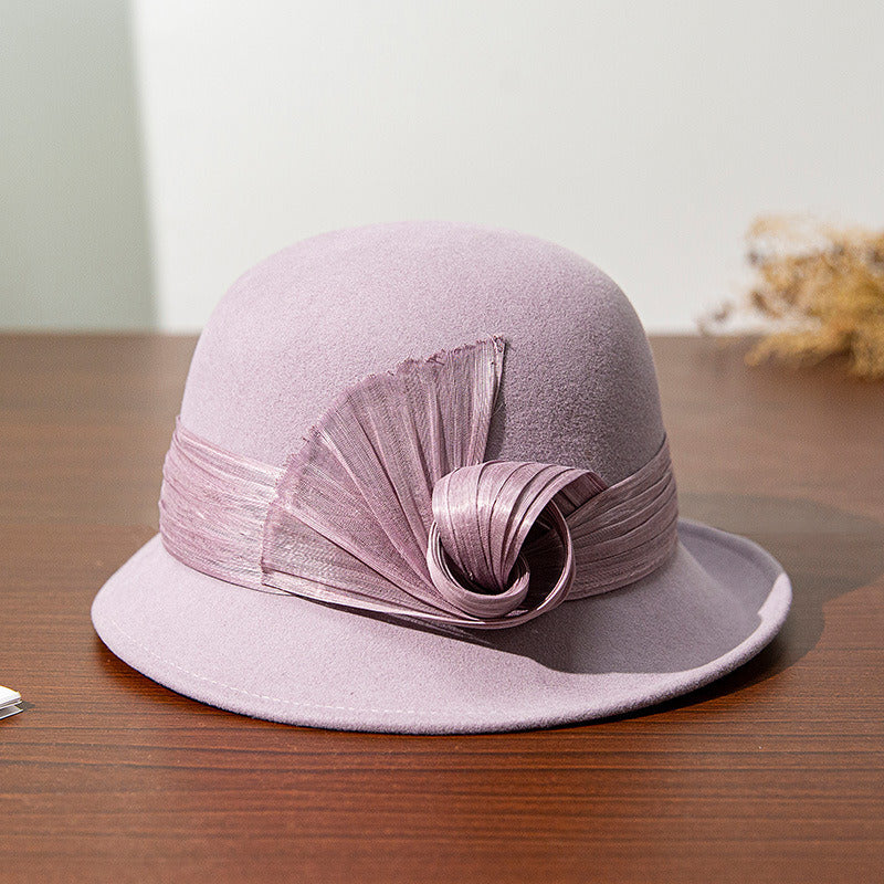 Women’s Flip Brim Winter Wool Wedding Guest Cocktail Cloche Hats With Silkabaca Decor