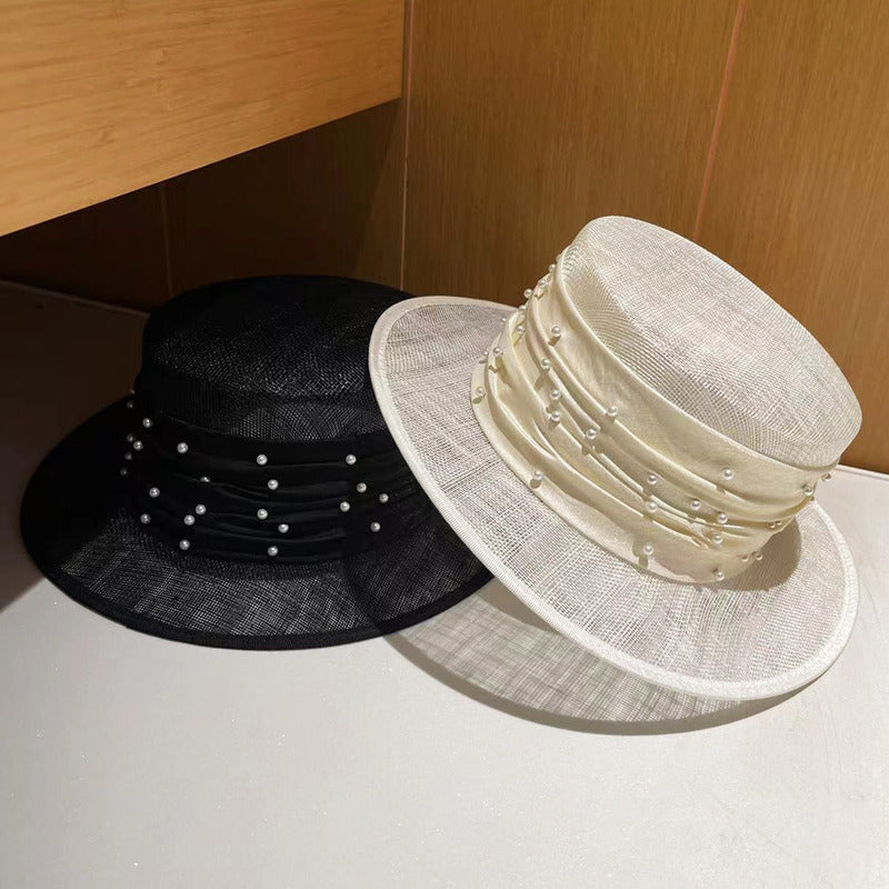 Women’s Flat Brim Summer Beading Ribbons Sinamay Cocktail Boater