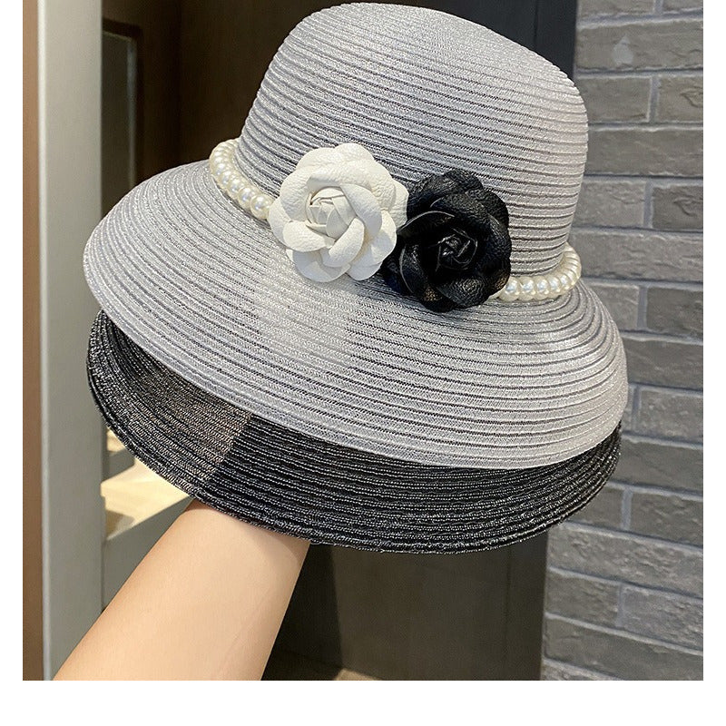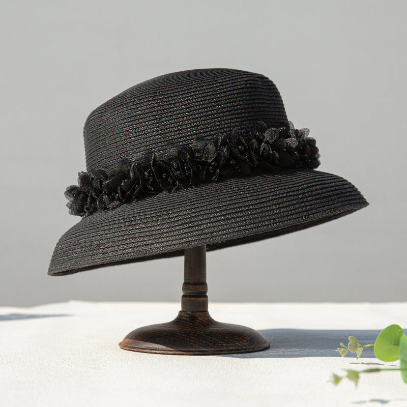 Women’s Elegant Summer Polyester Straw With Flower Beaded Band Special Occasion Sun Hats Straw Hats