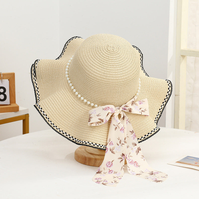 Women’s Summer Straw With Bowknot Pearl Holiday Sun Hats Fedora Hats Straw Hats