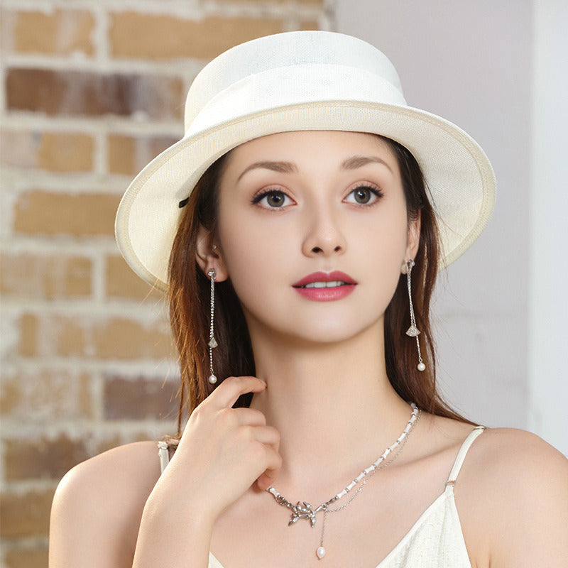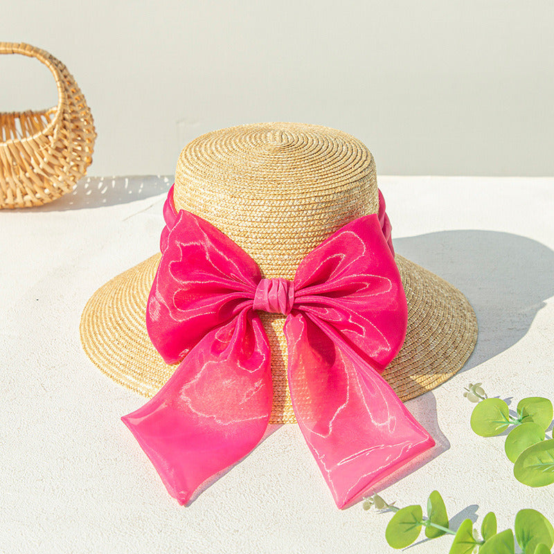 Women’s Flat Brim Summer Bow Band Straw Holiday Tea Party