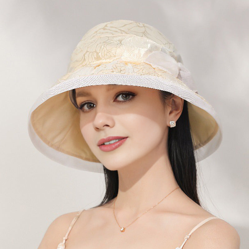 Women’s Packable Summer Bow Lace Mulberry Silk Tea Party Sun Hats