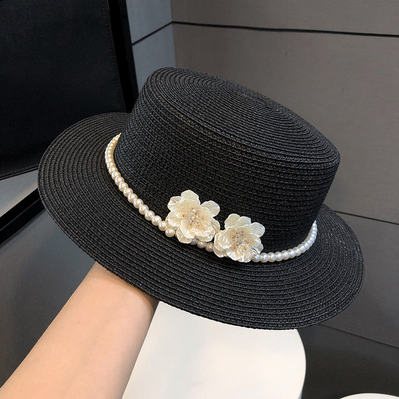 Women’s Summer Straw With Flower Pearl Holiday Sun Hats Straw Hats Boater