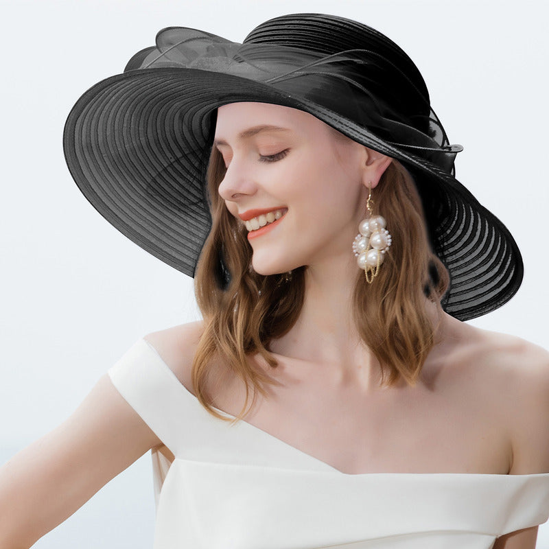 Women’s Wide Brim Faux Feather Twist Bow Wedding Guest Horse Hair Fabric Horse Racing Church Hats