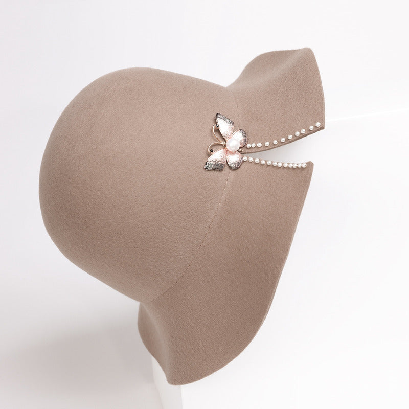 Women’s Classic Winter Pearl Rhinestone Wool Cloche Hats