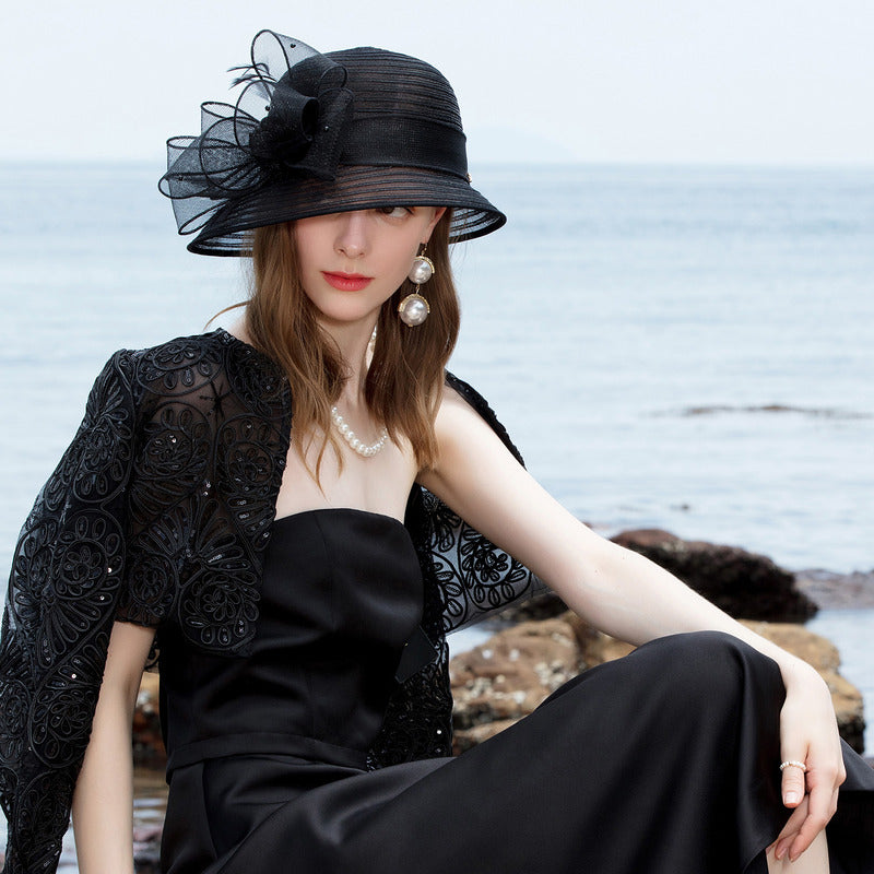 Women’s Classic Faux Feather Bow Horse Hair Wedding Guest Fabric Horse Racing Cloche Hats
