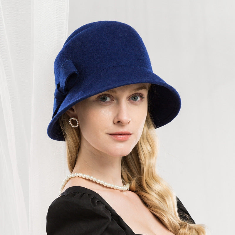 Women’s Simple Winter Wool Wedding Guest Cloche Hats With Bow