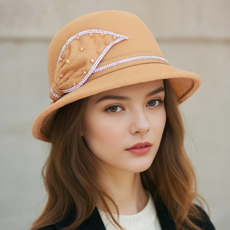 Women’s Vintage Felt With Rhinestone Cocktail Bowler Hats Church Hats