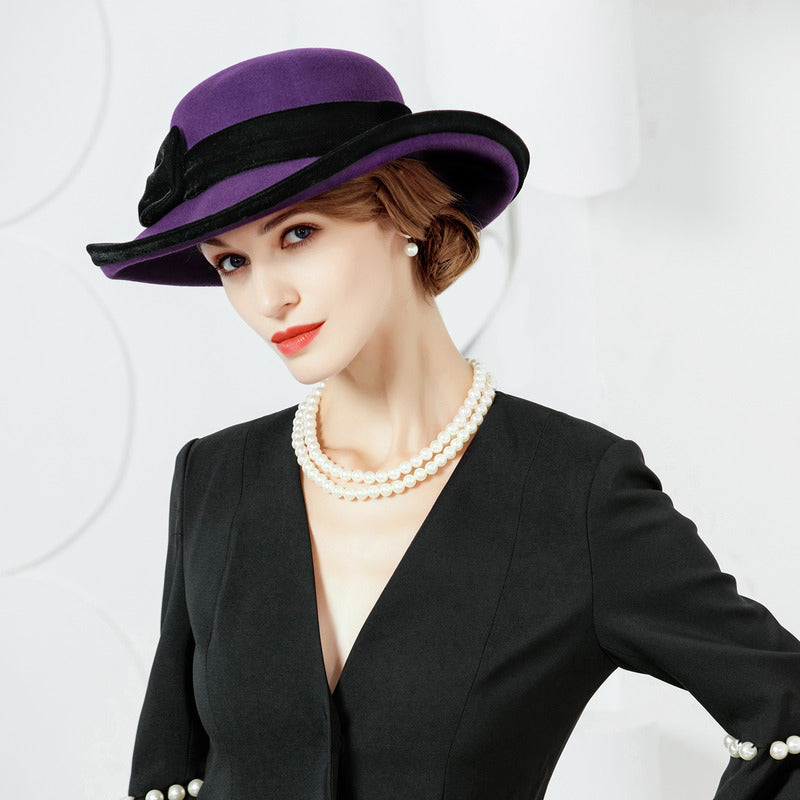 Women’s Wide Brim Felt With Flower Kentucky Derby Church Hats