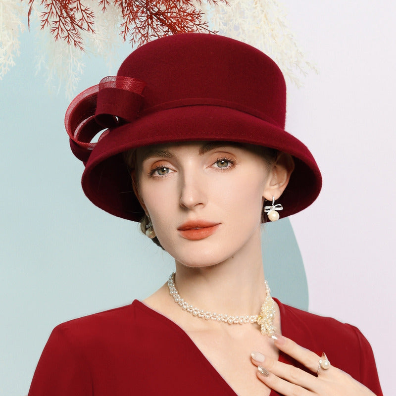 Women’s Vintage Winter Wool With Bowknot Special Occasion Cloche Hats – 416659