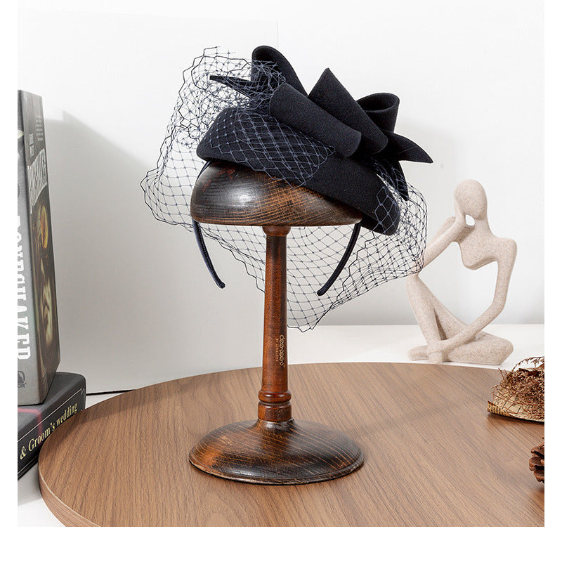 Women Elegant Winter Bow Veil Wool Wedding Kentucky Derby Fascinators With Headband