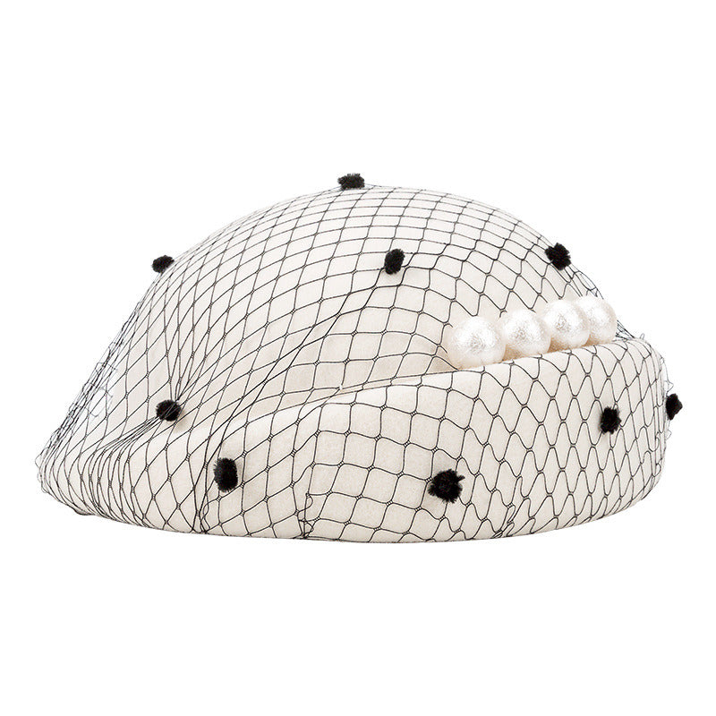 Women Elegant Winter Pearl Veil Wool Wedding Tea Party Beret Hats