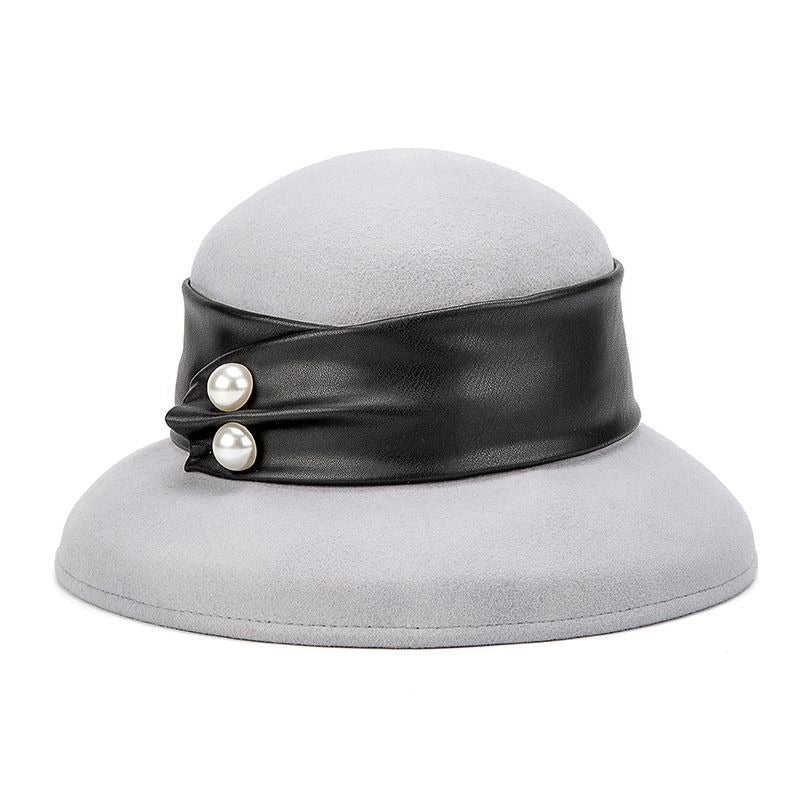 Women Elegant Winter Pearl Band Wool Wedding Tea Party Cloche Hats