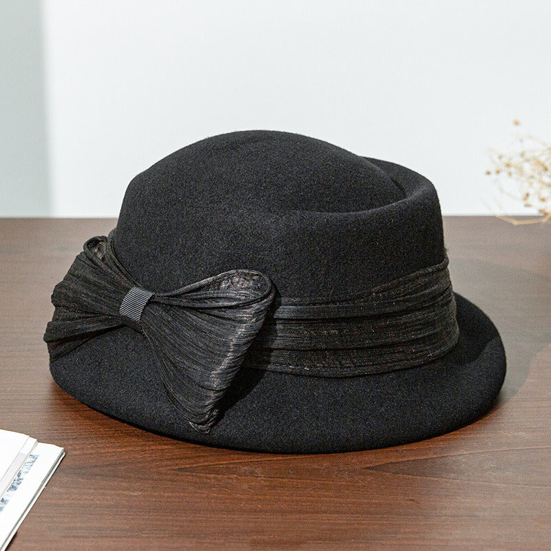 Women Elegant Winter Bow Silkabaca Wool Wedding Tea Party Porkpie Hat