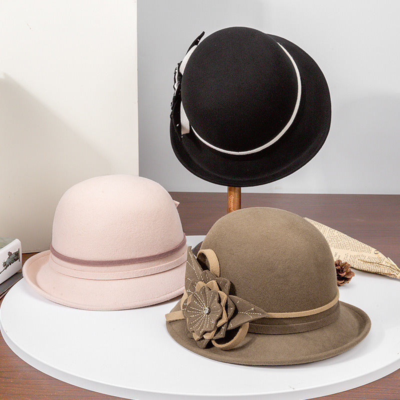 Women Classic Winter Flower Wool Wedding Tea Party Cloche Hats