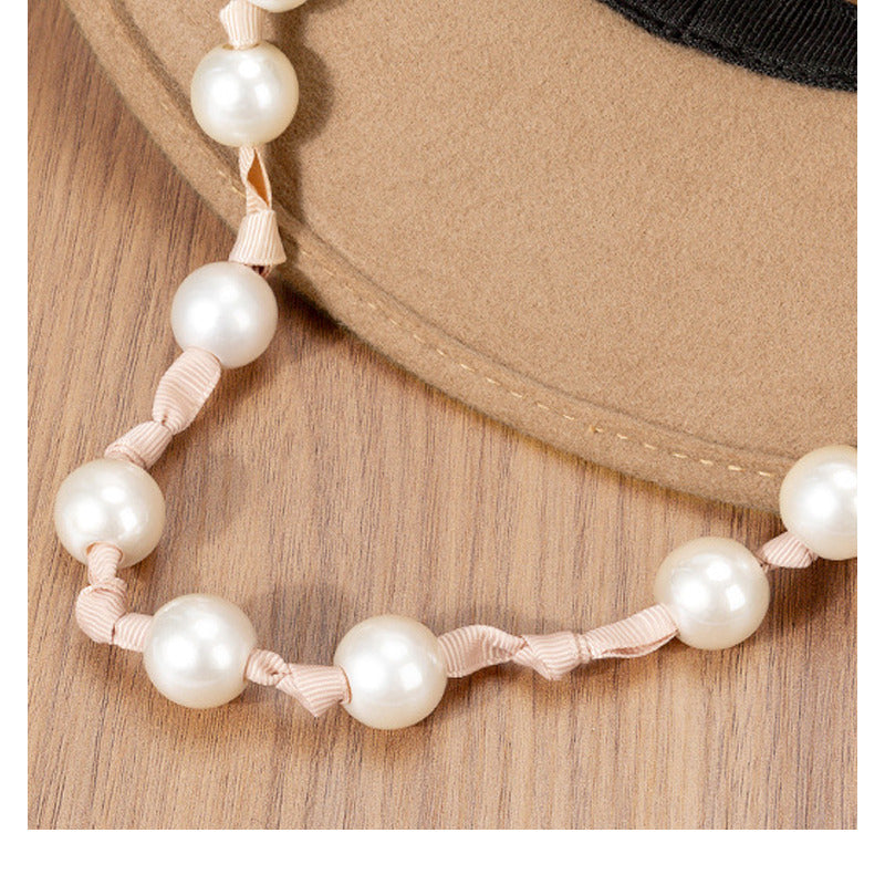 Women Flat Brim Winter Chain Strap Beaded Band Wool Wedding Tea Party Wedding Hats