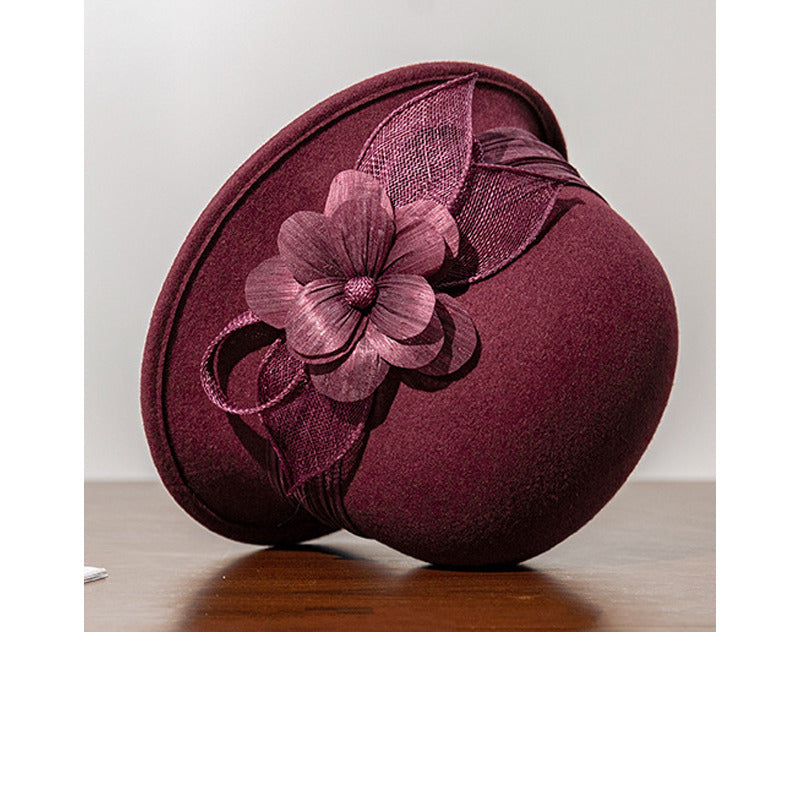 Women Vintage Winter Flower Wool Wedding Tea Party Cloche Hats