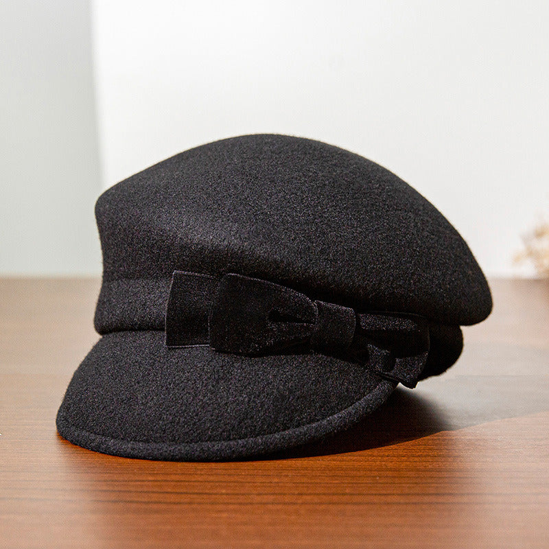 Women Simple Winter Bow Wool Wedding Tea Party Beret Hats