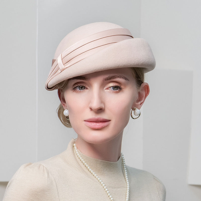 Women’s Classic Winter Wool With Ribbons Special Occasion Bowler Hats