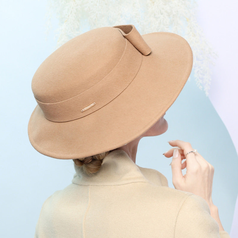 Women’s Flat Brim Winter Bow Wool Special Occasion Boater